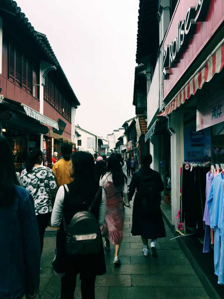 这是这学期第一次集体出游,也是同学们在繁忙的大二学习生活中难得的抽出时间一起出游。同学们心情也像这脆生生的阳光,一个半小时的车程,欢声笑语一直伴随着同学们。在11时左右,同学们到达了七宝古镇。之后大家一起悠游古镇,感受江南水乡的魅力。