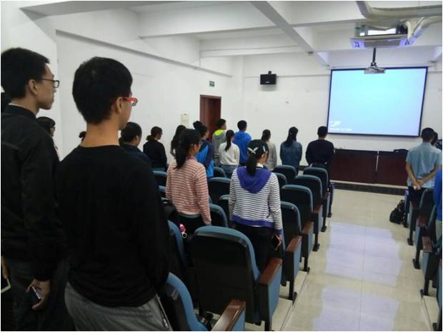 活动伊始,我们奏响了中国共青团团歌,之后团支书邹惠兰用一段简单的发言介绍了党的十九大的举行背景,并以此号召同学们学习习近平主席的重要讲话,争取做到党有号召,团有行动。