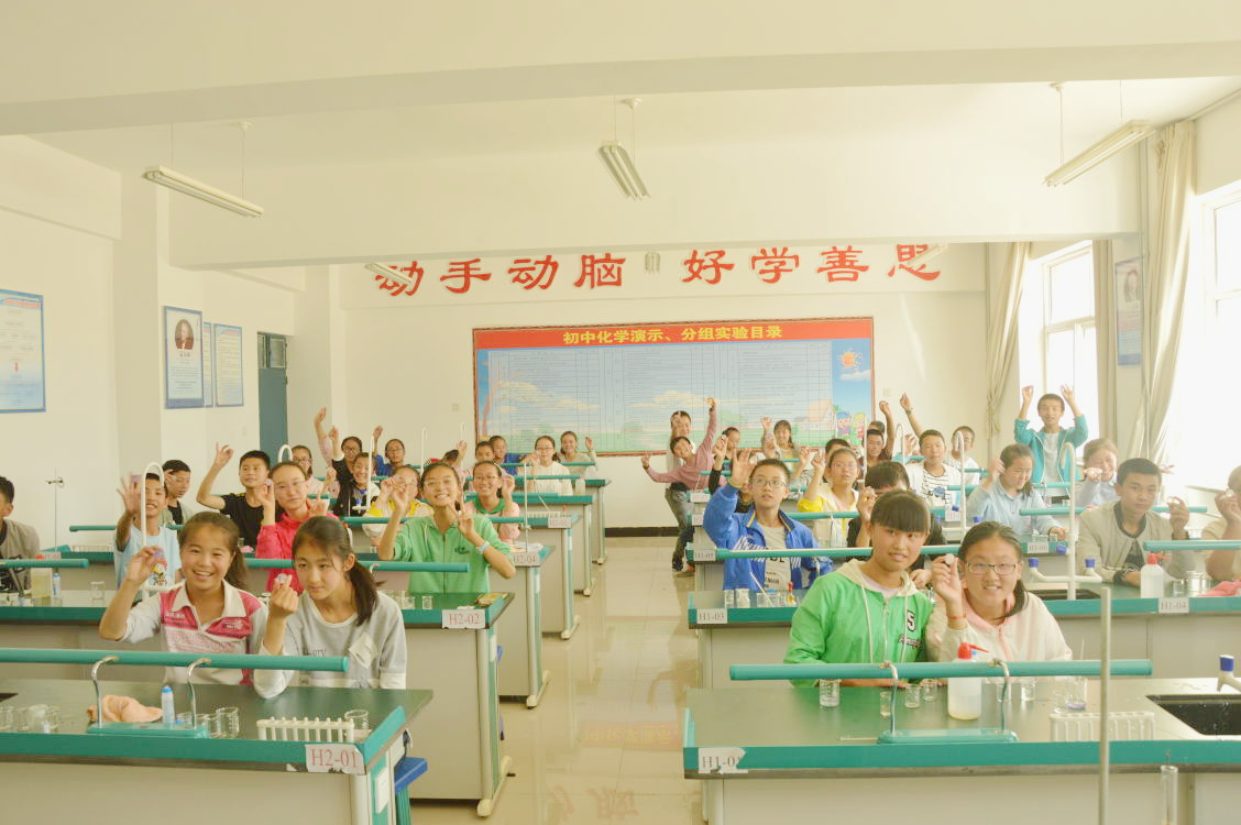 载阳照月宁夏组成员与小朋友一起做实验