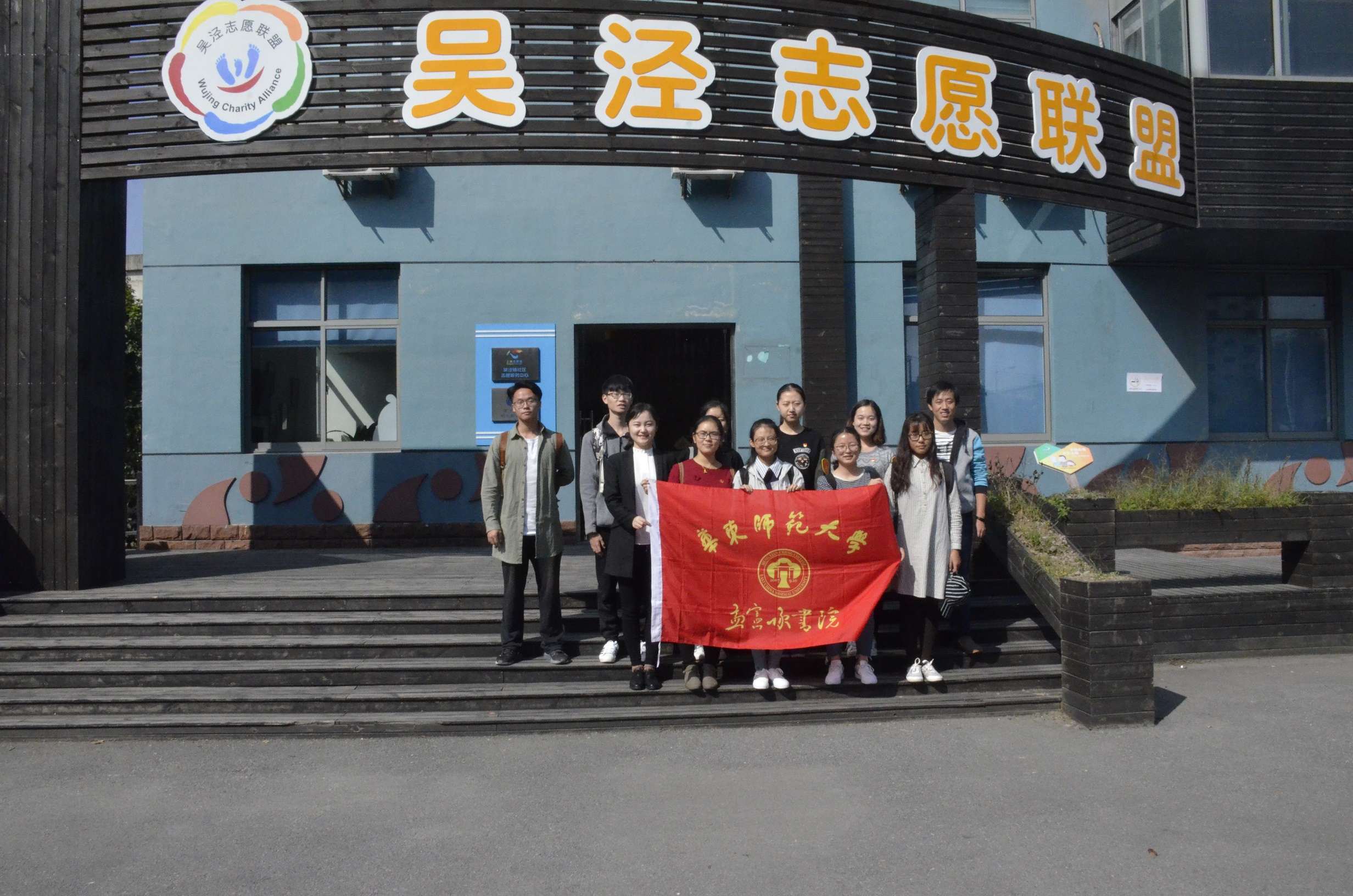 学生党员在吴泾志愿联盟外合影留恋
