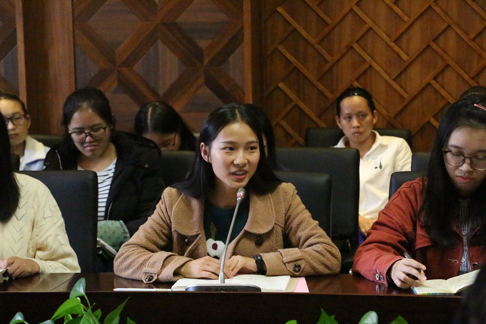 为深入学习贯彻党的十九大精神,加强对青年学生思想教育引领,助力女大学生自信成长,由我校妇女研究中心主办,孟宪承书院承办的“巾帼心向党 共筑中国梦——新时代女大学生自信成长与责任担当”的专题研讨会11月15日在学生共享空间301举办。原华东师范大学党委副书记杜公卓教授、华东师范大学社科处处长吴瑞君教授、华东师范大学心理与认知学院副院长郭秀艳教授作为受邀嘉宾出席。会议由孟宪承书院党委书记兼院长吴薇教授主持。
