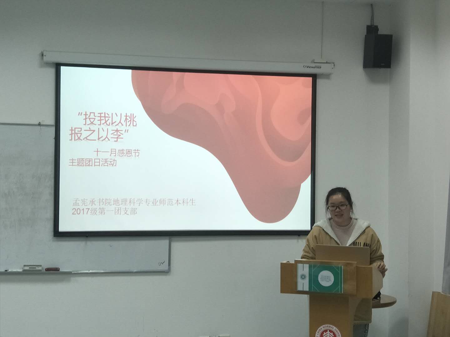 11月21日,孟宪承书院地理科学专业师范本科生2017级第一团支部的同学们在共享空间302进行了十一月份的主题团日活动。本次活动以“投我以桃,报之以李”为主题。