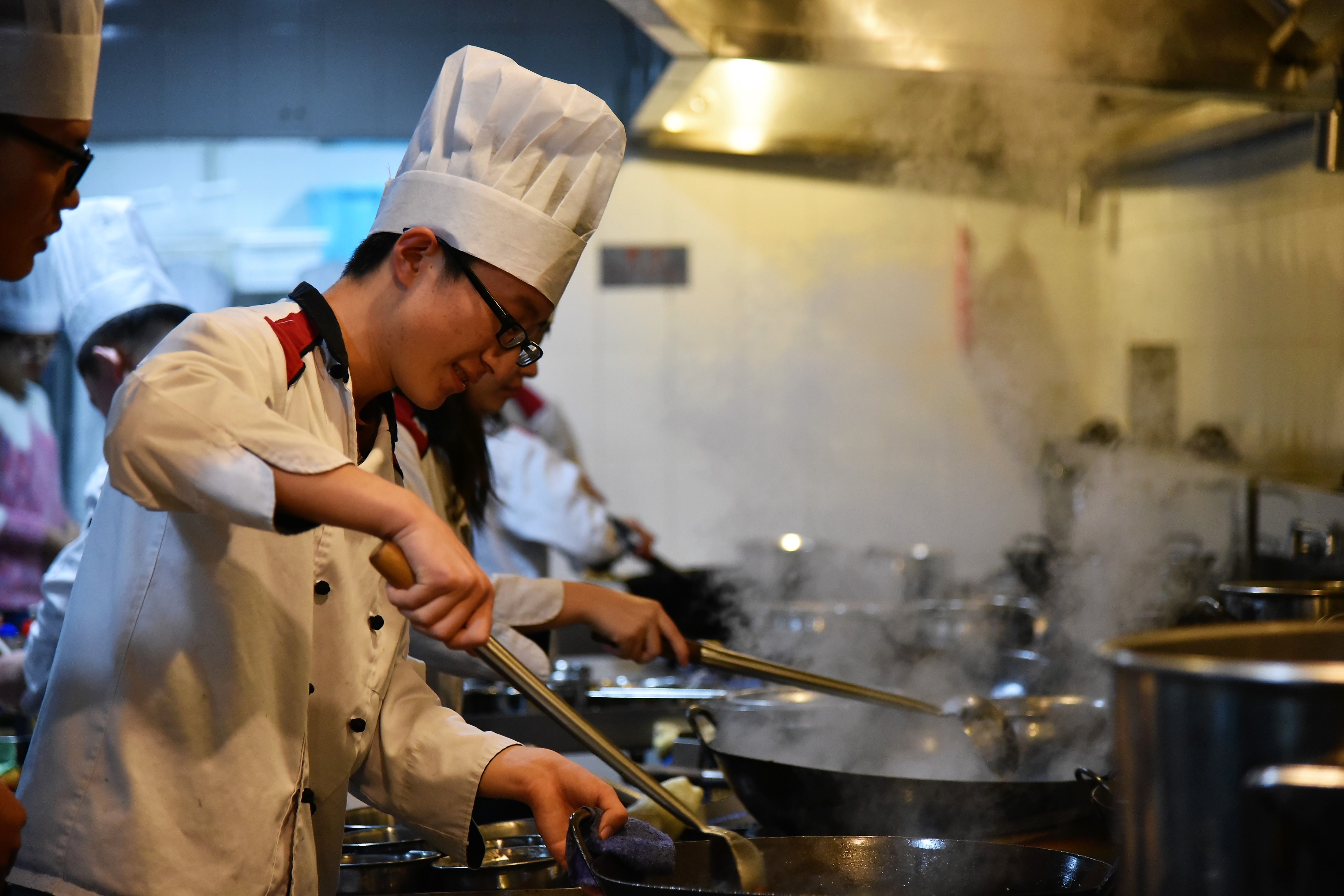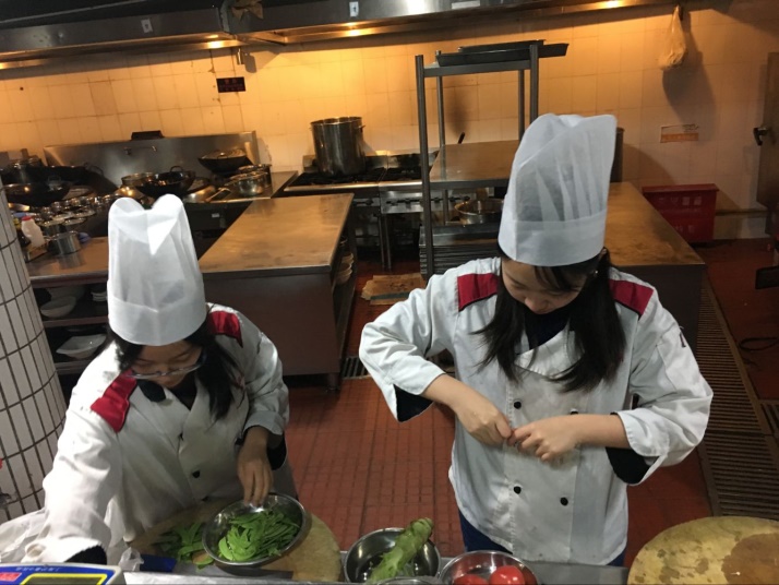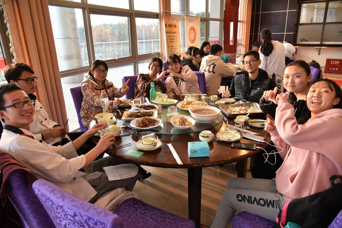 活动开始前半小时,10位班委提前到达餐厅进行布置,将食材按四个小组分配好,并请餐厅的厨师帮忙准备了包饺子用到的饺子皮和馅料,一切准备就绪。下午两点,没有课的同学陆续到达餐厅二楼。虽然已经入冬,但寒冷的天气并没有削减同学们的积极性,大家看着准备好的食材跃跃欲试。经过短暂的分组,会做菜的同学被分为四组,餐厅管理人员为每位同学分发了工作服,大家有序进入后厨。因为食材都是按照同学们意愿采购的,每位小组领到自己的食材后就开始了紧张忙碌的加工:每个小组内部协调分工,一些同学在水池边清洗菜蔬,一些同学在案前切食材,剩余同学则在厨师的指导下点火炒菜……同学们都认真处理着手中的工作,仿佛每一个人都是厨艺高超的大师。后厨做菜活动如火如荼展开,餐厅里的同学用没有闲着,班委组织剩余同学围在圆桌前包饺子,会包饺子的同学娴熟地裹馅儿、捏皮,丝毫不输专业师傅;而不会包饺子的同学则在旁边认真的学习如何包,劲头比做数学题还足。一个小时以后,后厨的同学们差不多完成了菜蔬的烹饪,一盘盘菜色香味俱全,等着同学们品尝;而桌前的饺子也包了好几盘,饺子被端到后厨煮熟,在煮饺子的间隙,同学们都到齐了,大家在桌前聊天吃零食玩桌游,每位同学兴致都极高,餐厅中时不时传出一阵阵笑声……最后,大家一起品尝了自己亲手做出的食物。到此,班级活动圆满结束!