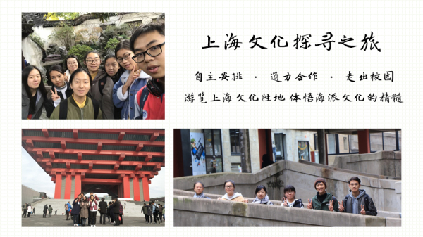 A:那可真是太多了。除了这些团培之外,我们还为学员们准备了户外拓展系列活动,包括校园定向越野,上海文化探寻等。学员们在体验户外实践乐趣的同时,也收获到了真挚的友谊,甚至有些学员还大呼不过瘾呢。上海游活动中,各个小组自主安排,通力合作,走出校园,游览上海文化胜地,体悟海派文化的精髓。