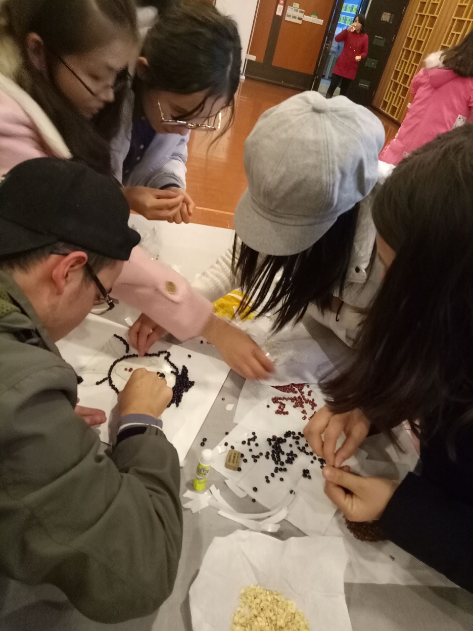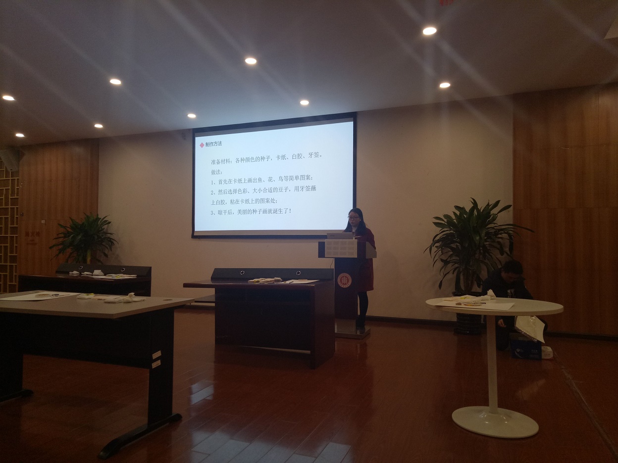 Part.2 学姐实习经历分享 本次例会有幸请来了刚实习结束的学姐蒋莹和许萌,前来分享她们实习时的经历及经验。蒋莹学姐以八个字“找准定位,留好退路”,提醒大家在找实习工作时要量力而行,选择自己想要去的几所学校即可,以免精力不足,准备不好面试及试讲。许萌学姐则是分享了她在实习中上课的经历。她告诉我们要多请老师前来听课,也要多去听老师们的课,这样才能收获建议,有所提升。 Part.3 “团队logo设计&种子拼图大赛”团日活动 例会的第三部分,是由第四组同学带来的“团队logo设计&种子拼图大赛”团日活动。 首先,本次活动的主持人向大家介绍了种子拼图的制作方法,也向大家展示了一些优秀的种子拼图作品。 接下来,就是各组同学发挥创意,设计自己的团队logo来完成种子拼图的时间!大家各施所长,有的负责绘画,有的为logo配色,还有的亲手粘上一颗颗的豆子。众人拾柴火焰高,短短的45分钟过后,一幅幅精美的作品完成啦! 最后是比赛环节,通过投票,学生管理团队的成员们选出了各自满意的作品。投票结果并不重要,大家都在此次活动中重返童年,又同时培养了我们的动手能力与团队合作能力,大家都收获满满,对此次活动的评价很高。 愉快的团日活动结束了,但相信这次经历会久久地留在大家的心中,活动中各组留下的作品也会被一直珍藏。有勤助团队的成员这样评价这次活动:“就像回到了童年,单纯的年代,互不服气,互相调侃,无忧无虑。”这是一次充满童趣的活动,也是一次充满快乐的活动。希望团队成员将参与团日活动时愉悦的心情带入日后的学习、工作中,继续为书院争光!