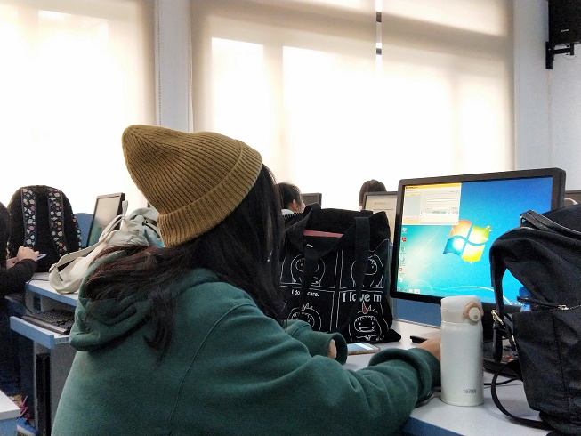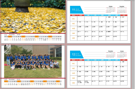 接下来就是最有意思的环节了,主持人将全班同学分为十二组,每组负责班级台历的一页图片设计。同学们先选出自己最喜欢的班级合照或者由班级同学自己拍摄的华东师范大学的风景照,然后在网络上搜索合适的日历排版,两者进行有创意的拼接设计,最后创作出属于2016级英语师范班独有班级年末纪念礼物。