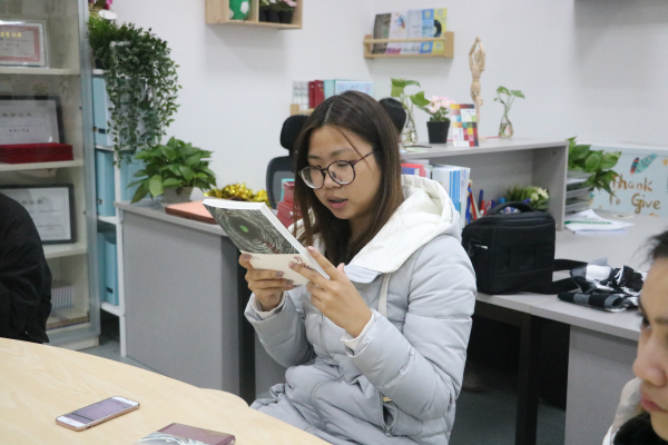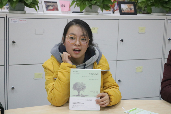 玛迪娜向大家介绍了一本感人的书——《幸存者回忆录》,这是诺贝尔奖得主多丽丝•莱辛写给自己儿子的回忆录,着重体现了责任感复兴意识、人文关怀复兴意识、人性复兴意识。玛迪娜从中学习到了很多深刻的思想,在读书会中毫无保留地与大家进行分享,激起了大家热烈的讨论。
