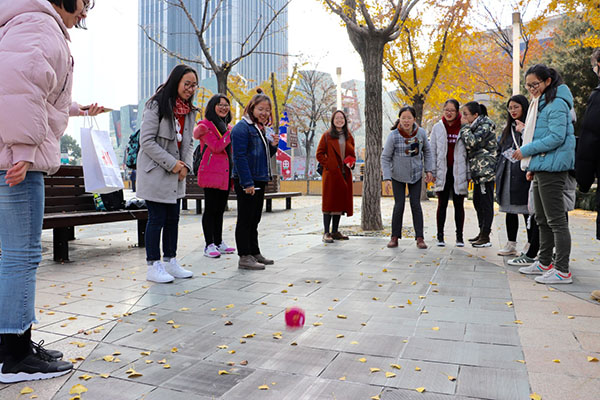 2017年12月10日,秋季学导出访活动3.0——“沪融歆生”圆满落幕。在一天的行程中,同学们不仅领略到上海的包容与开放之美,见证了国内外不同文化的交融碰撞,也在这个过程中找到了属于故乡的旧时记忆。大家游览拍照,听领队们细致而有趣的解说,体验团队合作的主题游戏,一路欢笑相伴,留下了一段段美好的记忆。 全体参与人员合影 在出访的沿途中,当有同学举起手机拍下某个标志时——不必说,这一定是又发现触动内心的故乡元素了。每个小组的成员都在路途中“寻乡问道”,观察并且记录着——各式路牌、建筑、雕塑、甚至广告牌……它们无一不是这座城市文化交融的见证。 元素收集 活动中最有特色的游戏莫过于“弄堂旧忆”了。于公园、广场、老街或小亭子里,用粉笔画上白色格子,带着任务卡、回答问题、丢掷沙包,加速越向正确答案。 “最后一题:你的新归属?”“上海!”欢声笑语之中,记忆似乎飘回了童年记忆中的弄堂深处。 “弄堂旧忆”游戏 建筑掠影: 线路一“建筑掠影”成员合影 从武康路上的老房子艺术中心一路走到巴金故居,沿途踩过满地梧桐落叶,发出清脆的响声,而两边是上世纪房屋建筑的静默陪伴。老房子艺术中心里,一张张摄影画像、一个个建筑模型都是时间流淌的痕迹。参与活动的同学在参观的途中认真地阅读着展品介绍,带着领队的问题,寻找着其中的“蛛丝马迹”。 老房子艺术中心参观 人民广场旁的外滩街道,地处繁华热闹的城市中心,南京路、北京路、福州路等汇集于此,而同学们也在这里收集到了不少的家乡元素。 家乡元素的“总结验收” 海派故里: 文化和时空在多伦路交叠,这里的每一步都好像跨越了无数。沿途是各式各样的夹街小楼、名人铜像、浮雕版画……但若是一路浮光掠影匆匆看过,便找不到其中包含着的游戏答案了。领队们提前准备好的问题里,有关于讲解词中的历史文化知识,有关于景点里路牌题字的微小细节……每个自信回答问题的同学看起来都博古通今。 问题抢答 “窦乐安路路牌上的‘乐’字是怎么写的?” 线路二“海派故里”成员合影 外白渡桥是上海地标性的建筑,它承载着百年历史,出现在许多优秀的文学影视作品里,亦成为许多海外游子思乡的所在。同学们沿苏州河岸,细览两旁的历史建筑,直至外白渡桥。 时间居所: 听领队关于外白渡桥的讲解 线路三“时间居所”成员合影 随后大家又在黄浦公园里瞻仰人民英雄纪念塔,欣赏浦江两岸风景,感受这座城市一路走来的劫难与骄傲。而一个和祖国各地文化有关的bingo游戏“地名风物话古今”就此展开……两个小组的成员们紧张地讨论着游戏选题与答案,奔跑以获得问题的同时还要应付拦路障碍才能成功抵达。 合作解答bingo问题 短短的一天行程落下帷幕,在这一天的路途中,参与的同学相互结识了新的伙伴,增进了默契与友谊,感受到上海的魅力,寻找着归属的温暖……繁华现代的申城中,新的生命已经汇聚,它们碰撞着、交流着、影响着,又迸发出新的活力。四海之汇,以此为归。这座城市曾这样接纳过西方工业的文明,包容过中国广袤土地上的各种文化,拥抱过无数汇入其中的人们,而今天她也将这样向初入大学的新生们张开双臂。融汇之中,再广阔的空间里也一样会有熟悉的温暖、亲切的归属。 和有爱纪念品的合影 文 | 刘颖智 图 | 张逸涵 徐闻涵 周梁诗竹 龙雨雁 聂雨涵 尚云云