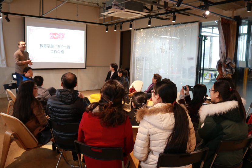 在之后举行的交流座谈会上,教育学部辅导员白雪源老师就学部的学生培养工作以“五个一百”为主题进行了汇报。“五个一百”工程具体包括100个“影子校长”培养计划、100个课外科研项目、100个大学生社团、100个社会实践项目、100个创新创业活动。“五个一百”人才培育体系主要目的在于发挥华东师范大学教育学部的专业优势,激发学生的主观能动性,促进大学生对基础知识、专业技能的学习,培养大学生学以致用和创新能力,提高学生群体性的研究型学习能力,促进高校社团健康有序发展,全面培养创新型人才、大学生创新观念,激发大学生的创新创业动力,帮助学生更好地学习与成长,实现人人成才、多样化成才的培育目标。以“五个一百”项目为基础,教育学部与孟宪承书院的学工团队老师们就人才培养的路径和方法进行了充分的信息交流和经验分享。